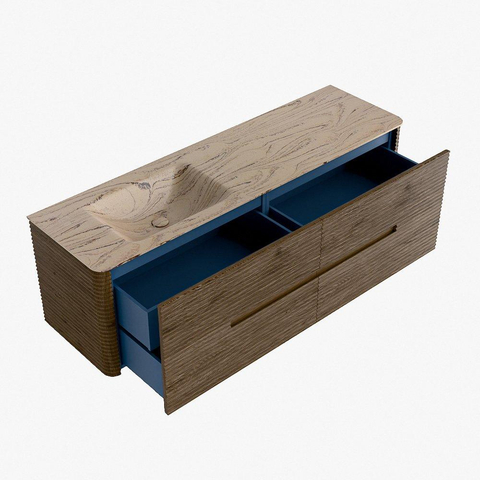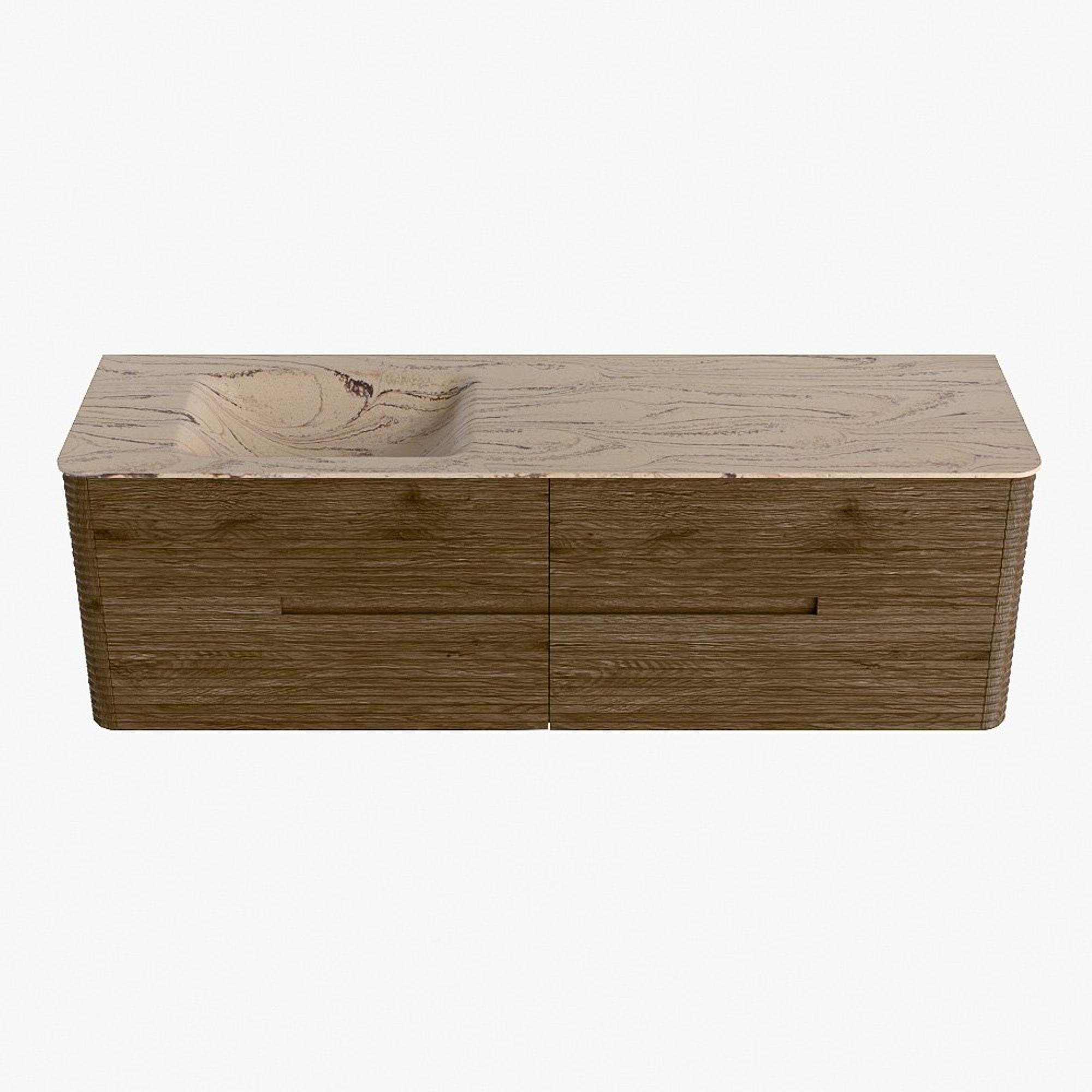 Mondiaz CIRO-DLUX Meuble de salle de bains - 160x45x50cm - Plan vasque solid surface Arena - 1 vasque à gauche - sans trous de robinet - 4 tiroirs - Dusk