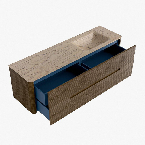 Mondiaz CIRO-DLUX Meuble de salle de bains - 160x45x50cm - Plan vasque solid surface Arena - 1 bassin à droite - 1 trou de robinetterie - 4 tiroirs - Dusk