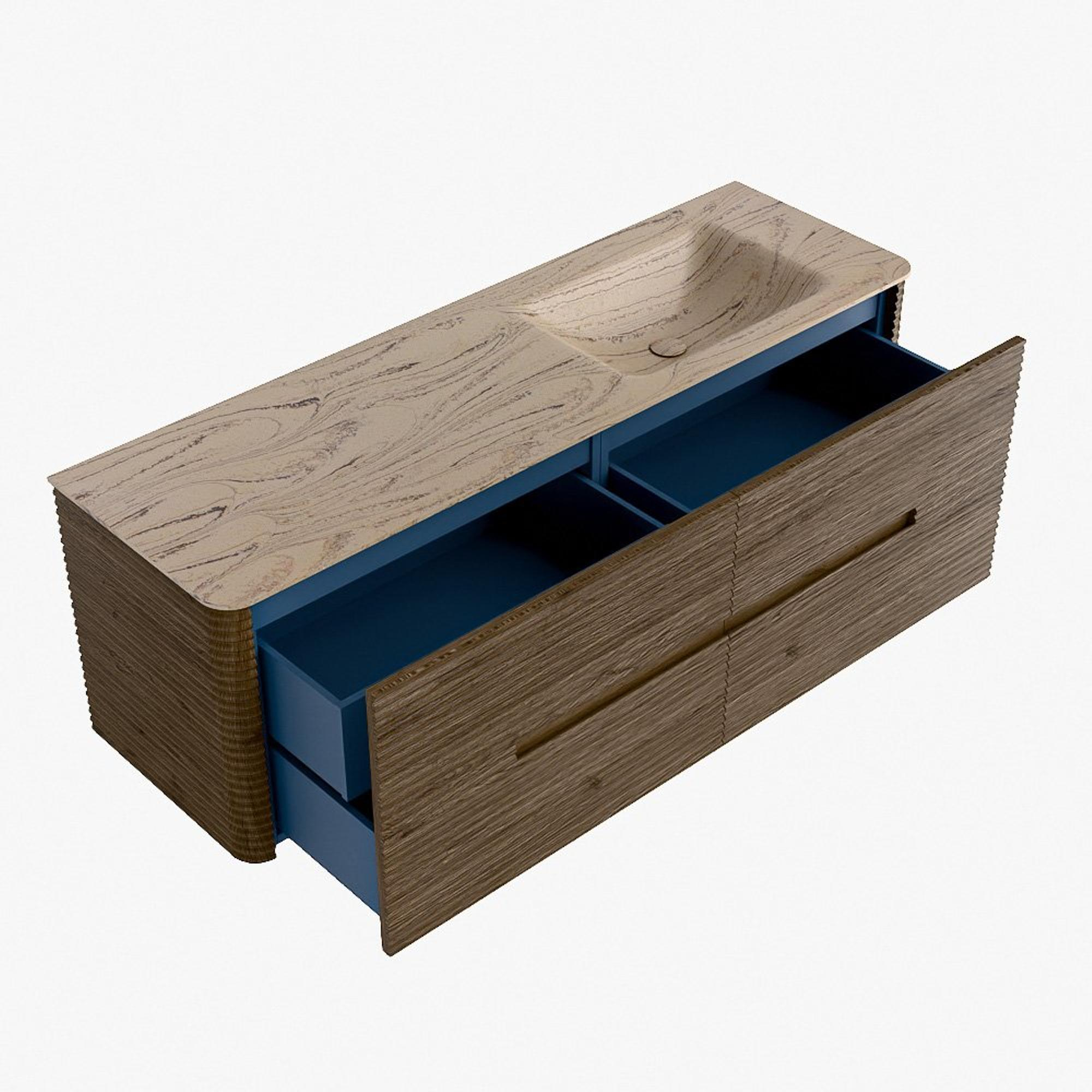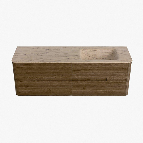 Mondiaz CIRO-DLUX Ensemble de meubles de salle de bains - 150x45x50cm - Plan vasque solid surface Arena - 1 bassin à droite - sans trous de robinet - 4 tiroirs - Dusk