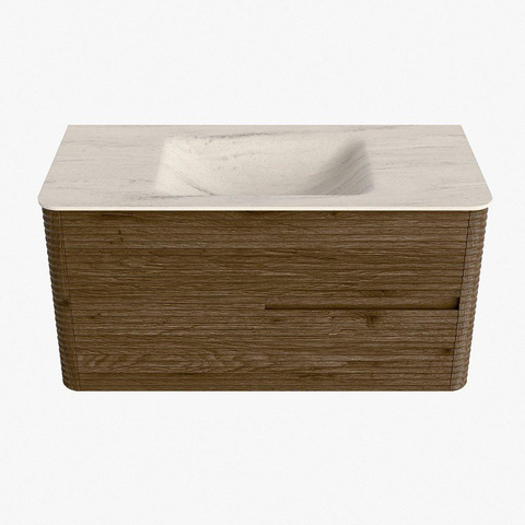 Mondiaz CIRO-DLUX Meuble de salle de bains - 100x45x50cm - Plan vasque Solid surface Meli - 1 vasque Centérale - 1 trou de robinet - 2 tiroirs - Dusk