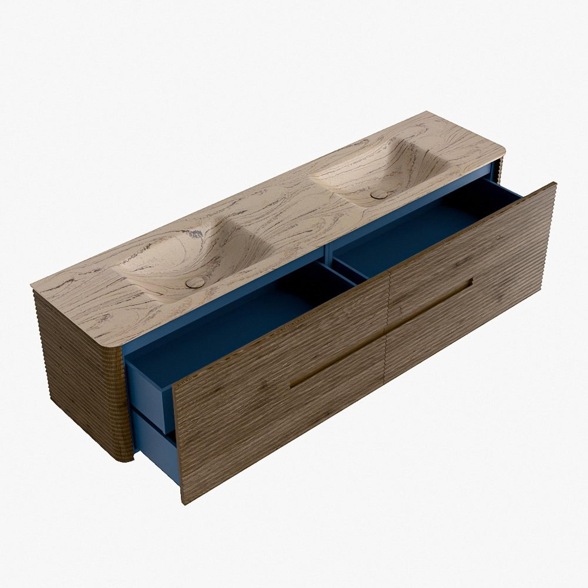Mondiaz CIRO-DLUX Ensemble de meubles de salle de bains - 190x45x50cm - Plan vasque solid surface Arena - 2 cuves Double - sans trous de robinet - 4 tiroirs - Dusk