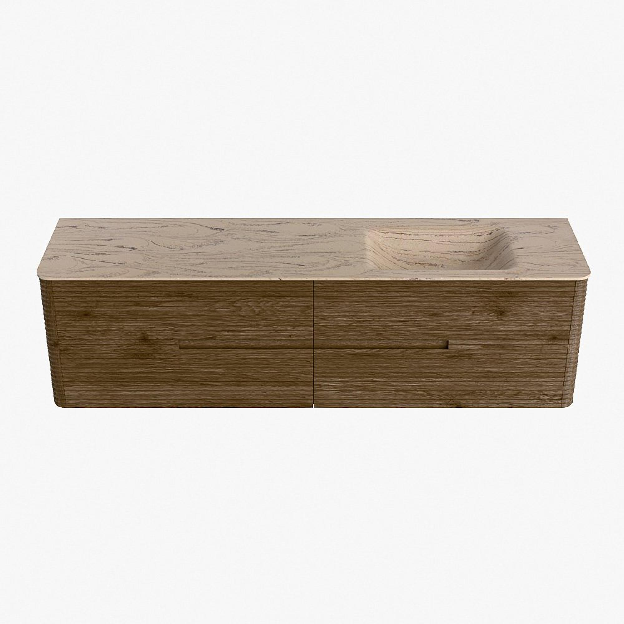 Mondiaz CIRO-DLUX Meuble de salle de bains - 180x45x50cm - Plan vasque en solid surface Arena - 1 bassin à droite - 1 trou de robinetterie - 4 tiroirs - Dusk