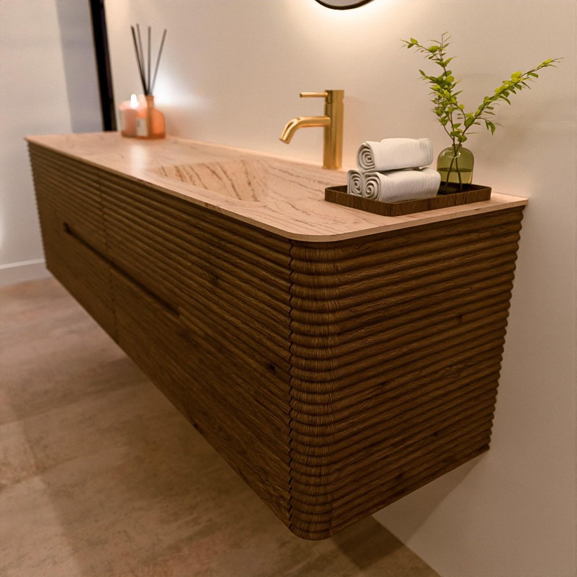 Le meuble de salle de bain CIRO-DLUX a été développé pour ceux qui choisissent un design moderne, des matériaux naturels et une fonctionnalité de haute qualité. Avec des dimensions allant de 70 cm à 190 cm, la gamme CIRO-DLUX s’intègre facilement aussi bien dans les salles de bain compactes que dans les grands espaces de design. Chaque meuble est une combinaison équilibrée d’esthétique, de savoir-faire et de qualité durable.