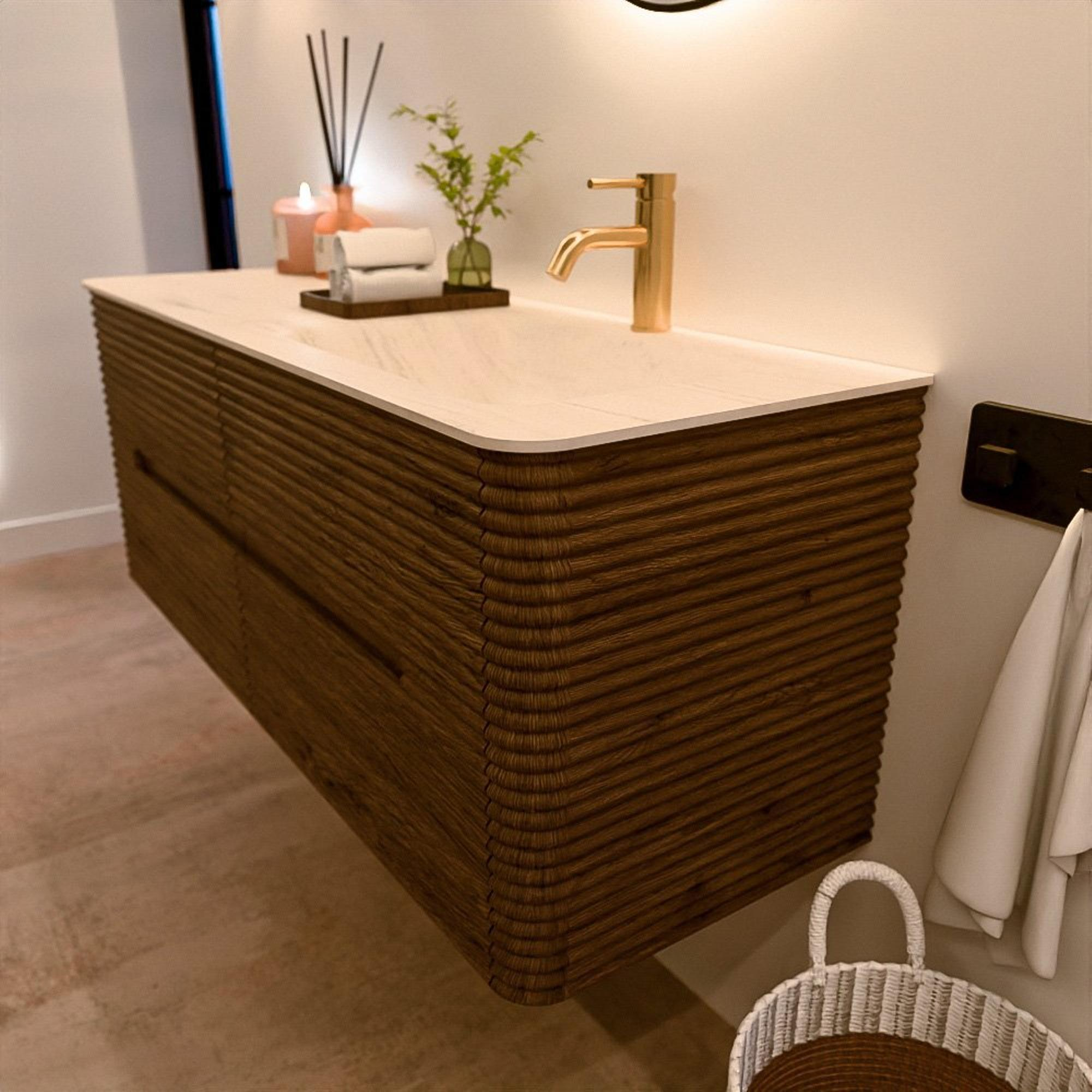 Le meuble de salle de bain CIRO-DLUX a été développé pour ceux qui choisissent un design moderne, des matériaux naturels et une fonctionnalité de haute qualité. Avec des dimensions allant de 70 cm à 190 cm, la gamme CIRO-DLUX s’intègre facilement aussi bien dans les salles de bain compactes que dans les grands espaces de design. Chaque meuble est une combinaison équilibrée d’esthétique, de savoir-faire et de qualité durable.
