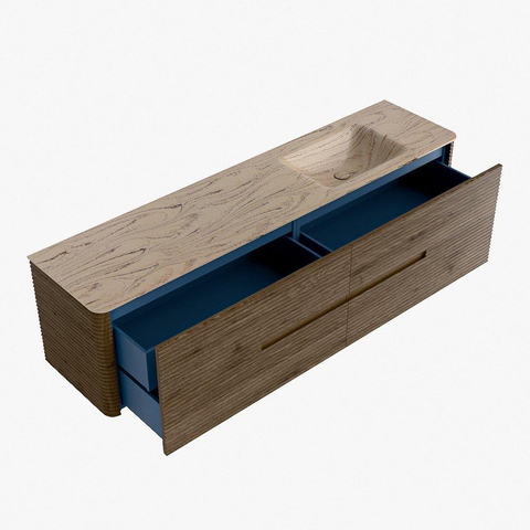 Mondiaz CIRO-DLUX Ensemble de meubles de salle de bains - 190x45x50cm - Plan vasque en solid surface Arena - 1 lavabo à droite - sans trous de robinetterie - 4 tiroirs - Dusk