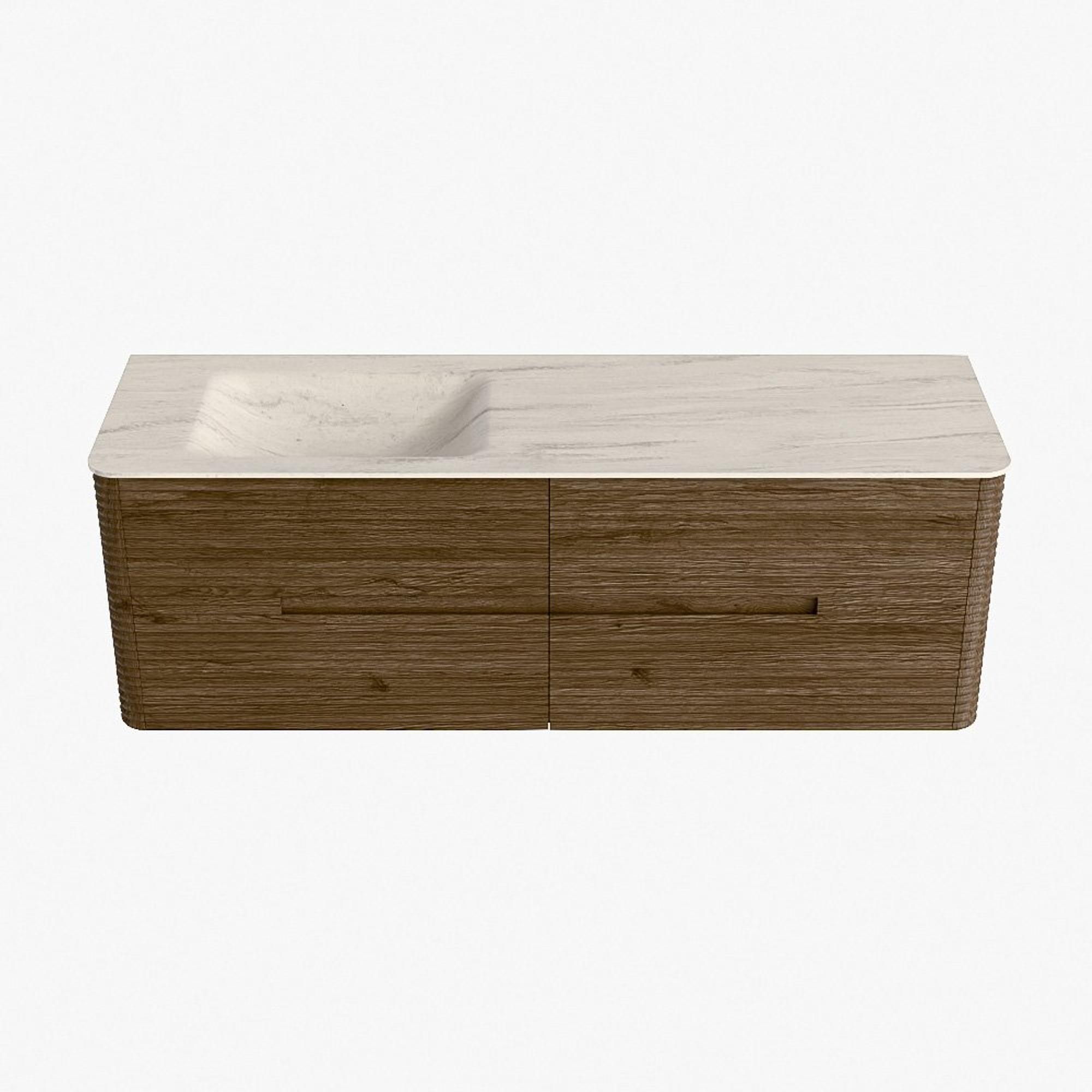 Mondiaz CIRO-DLUX Meuble de salle de bains - 150x45x50cm - Plan vasque solid surface Meli - 1 vasque à gauche - 1 trou de robinet - 4 tiroirs - Dusk