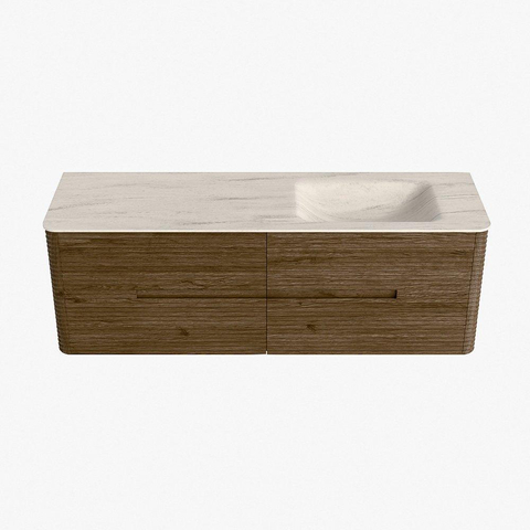 Mondiaz CIRO-DLUX Meuble de salle de bains - 150x45x50cm - Plan-vasque solid surface Meli - 1 vasque à droite - 1 trou de robinet - 4 tiroirs - Dusk