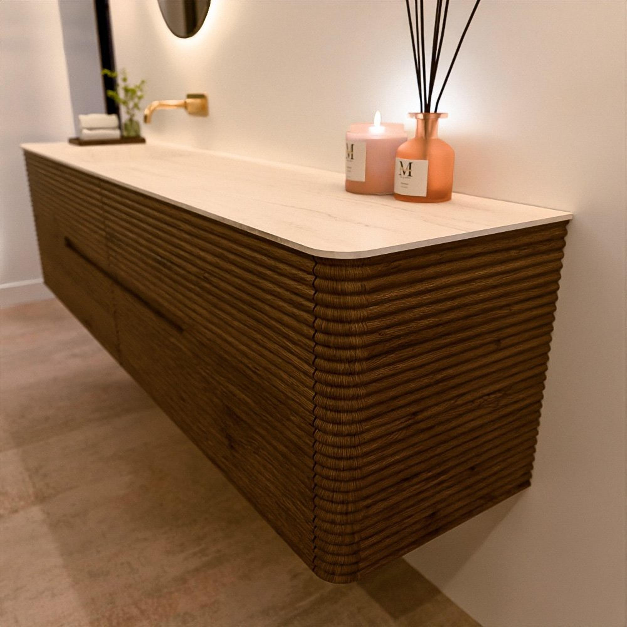 Le meuble de salle de bain CIRO-DLUX a été développé pour ceux qui choisissent un design moderne, des matériaux naturels et une fonctionnalité de haute qualité. Avec des dimensions allant de 70 cm à 190 cm, la gamme CIRO-DLUX s’intègre facilement aussi bien dans les salles de bain compactes que dans les grands espaces de design. Chaque meuble est une combinaison équilibrée d’esthétique, de savoir-faire et de qualité durable.