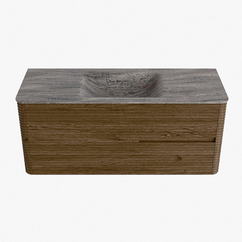 Mondiaz CIRO-DLUX Ensemble de meuble de salle de bains - 120x45x50cm - Plan-vasque solid surface Oza - 1 bassin au milieu - sans trous de robinet - 2 tiroirs - Dusk