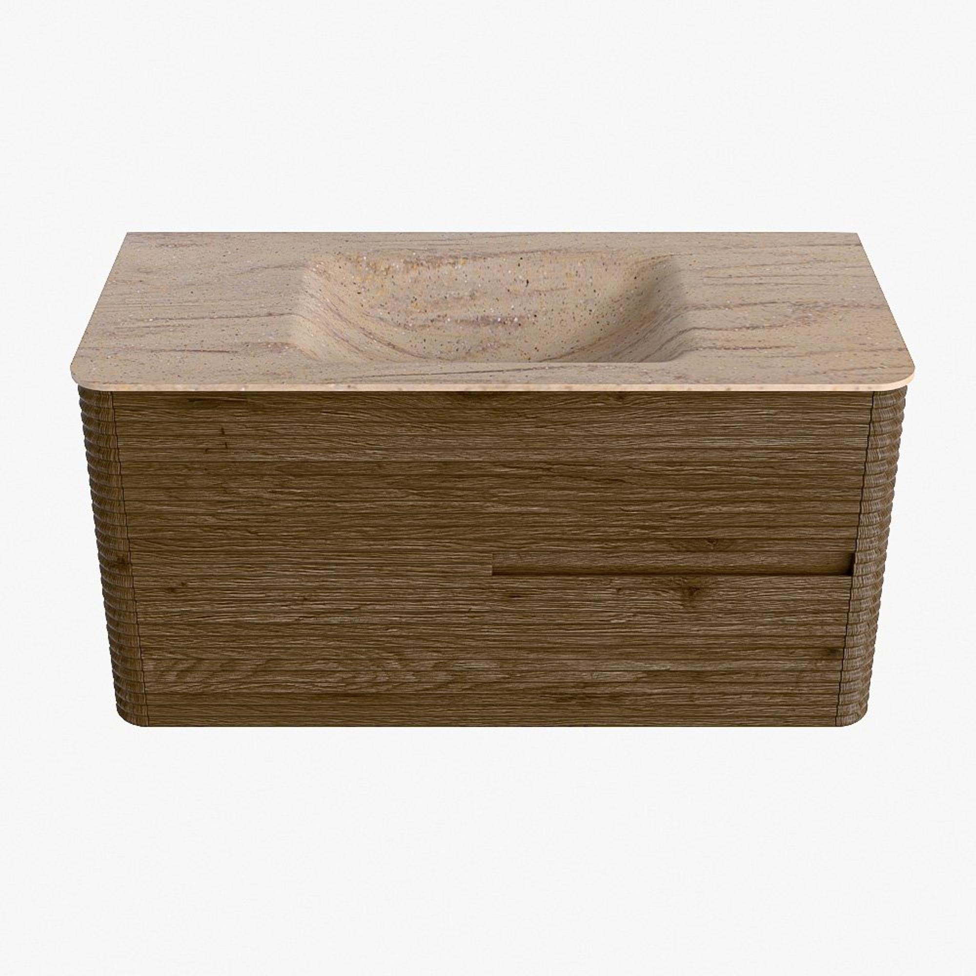 Mondiaz CIRO-DLUX Meuble de salle de bains - 100x45x50cm - lavabo Solid surface Saba - 1 vasque au milieu - sans trous de robinet - 2 tiroirs - Dusk