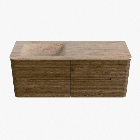Mondiaz CIRO-DLUX Meuble de salle de bains - 130x45x50cm - Plan vasque solid surface Saba - 1 vasque à gauche - sans trous de robinetterie - 4 tiroirs - Dusk