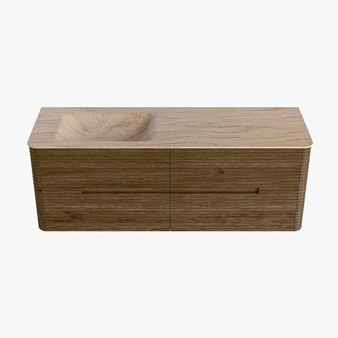Mondiaz CIRO-DLUX Meuble de salle de bains avec vasque - 140x45x50cm - Plan vasque solid surface Saba - 1 lavabo à gauche - 1 trou de robinet - 4 tiroirs - Dusk