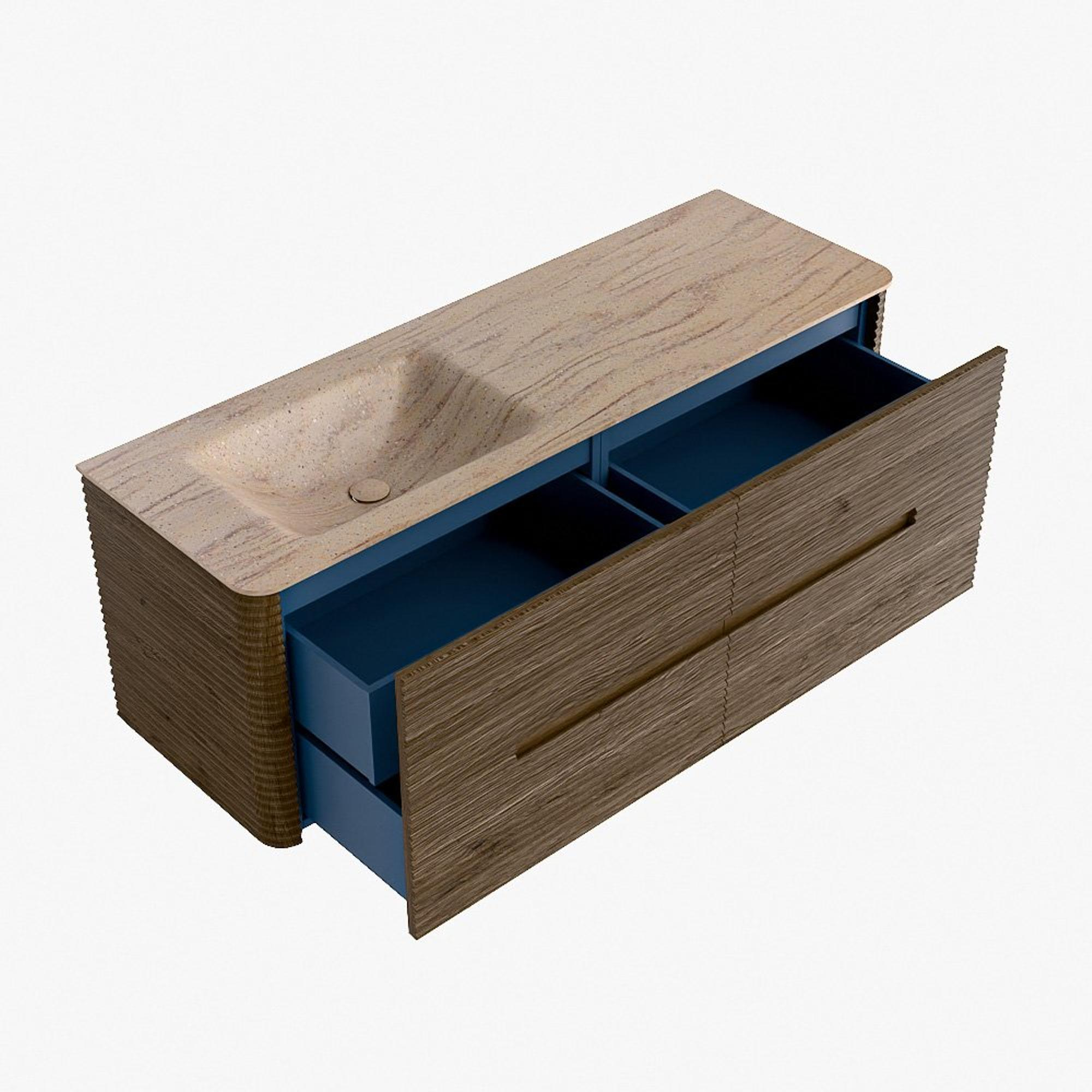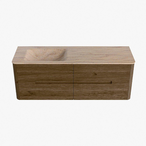 Mondiaz CIRO-DLUX Ensemble de meubles de salle de bains - 140x45x50cm - vasque Solid surface Saba - 1 lavabo à gauche - sans trous de robinet - 4 tiroirs - Dusk