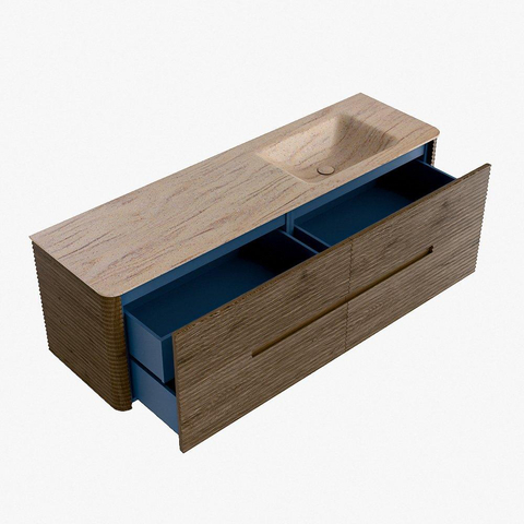 Mondiaz CIRO-DLUX Meuble de salle de bains - 160x45x50cm - Plan vasque Solid surface Saba - 1 vasque à droite - 1 trou de robinet - 4 tiroirs - Dusk