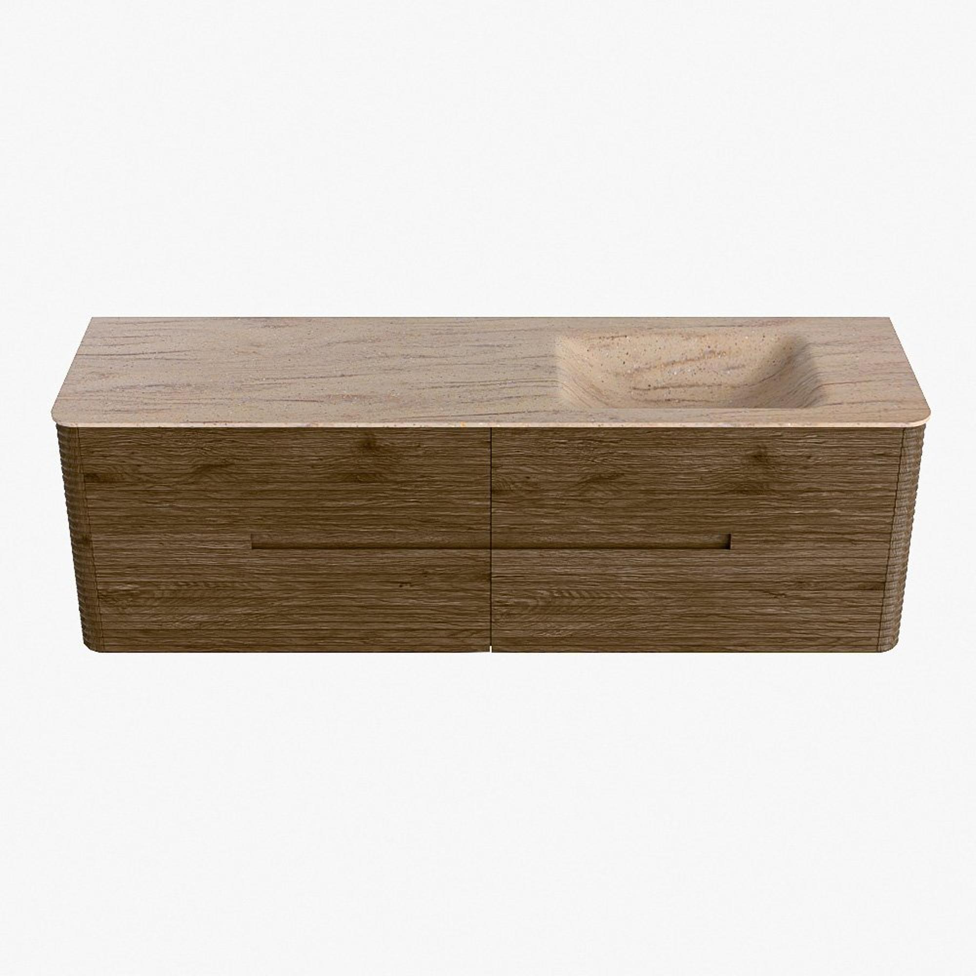 Mondiaz CIRO-DLUX Ensemble de meubles de salle de bains - 160x45x50cm - Plan vasque Solid surface Saba - 1 vasque à droite - sans trous de robinet - 4 tiroirs - Dusk
