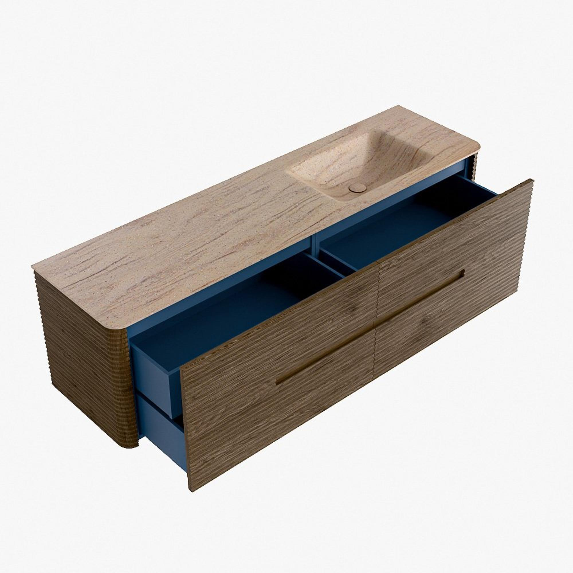 La praticité est un élément essentiel de la gamme CIRO. Le meuble dispose d’un grand tiroir avec un tiroir intérieur supplémentaire, idéal pour ranger de manière organisée tous les articles quotidiens de la salle de bain. Grâce à la poignée intégrée et au mécanisme de fermeture douce, la façade reste sobre, élégante et épurée.