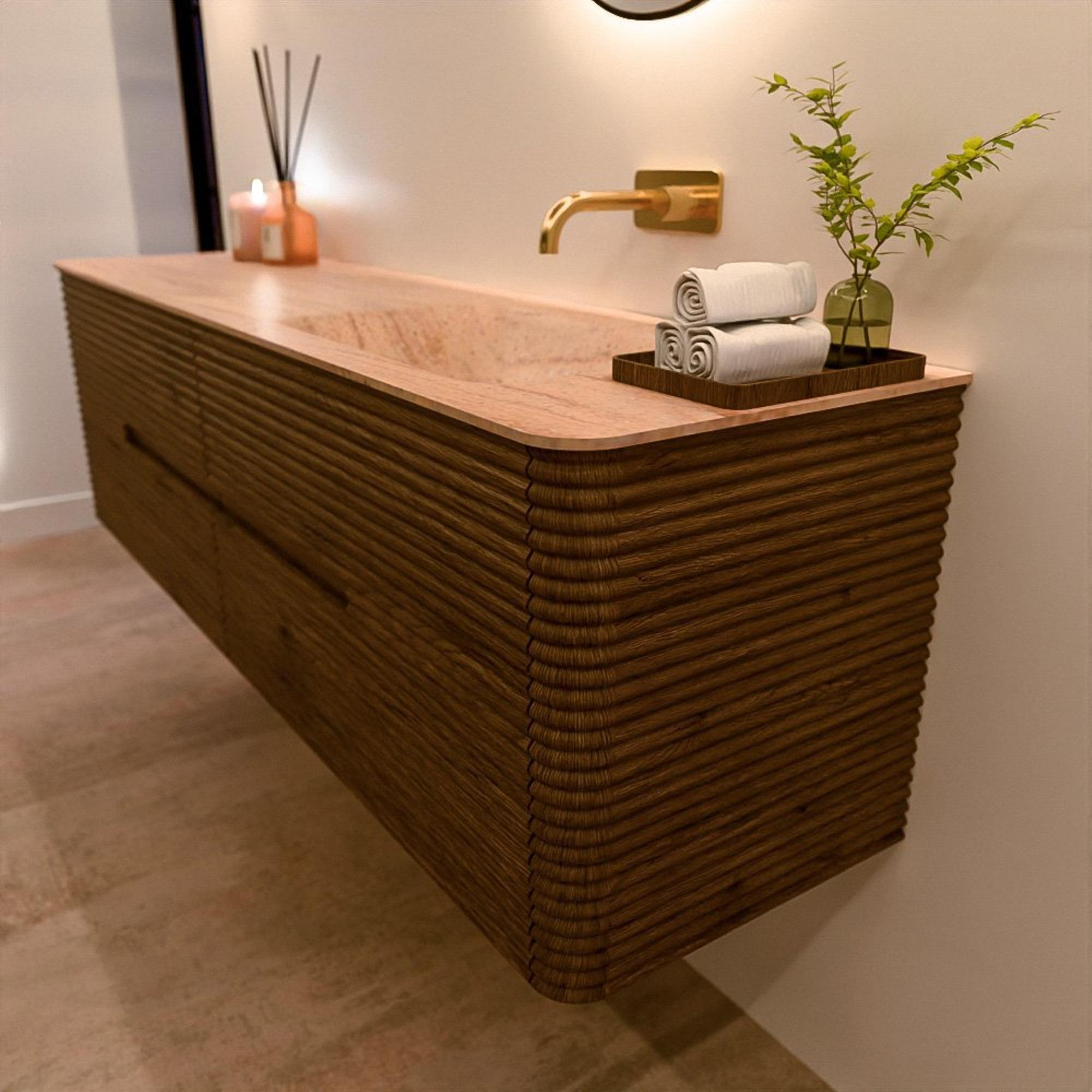 Le meuble de salle de bain CIRO-DLUX a été développé pour ceux qui choisissent un design moderne, des matériaux naturels et une fonctionnalité de haute qualité. Avec des dimensions allant de 70 cm à 190 cm, la gamme CIRO-DLUX s’intègre facilement aussi bien dans les salles de bain compactes que dans les grands espaces de design. Chaque meuble est une combinaison équilibrée d’esthétique, de savoir-faire et de qualité durable.