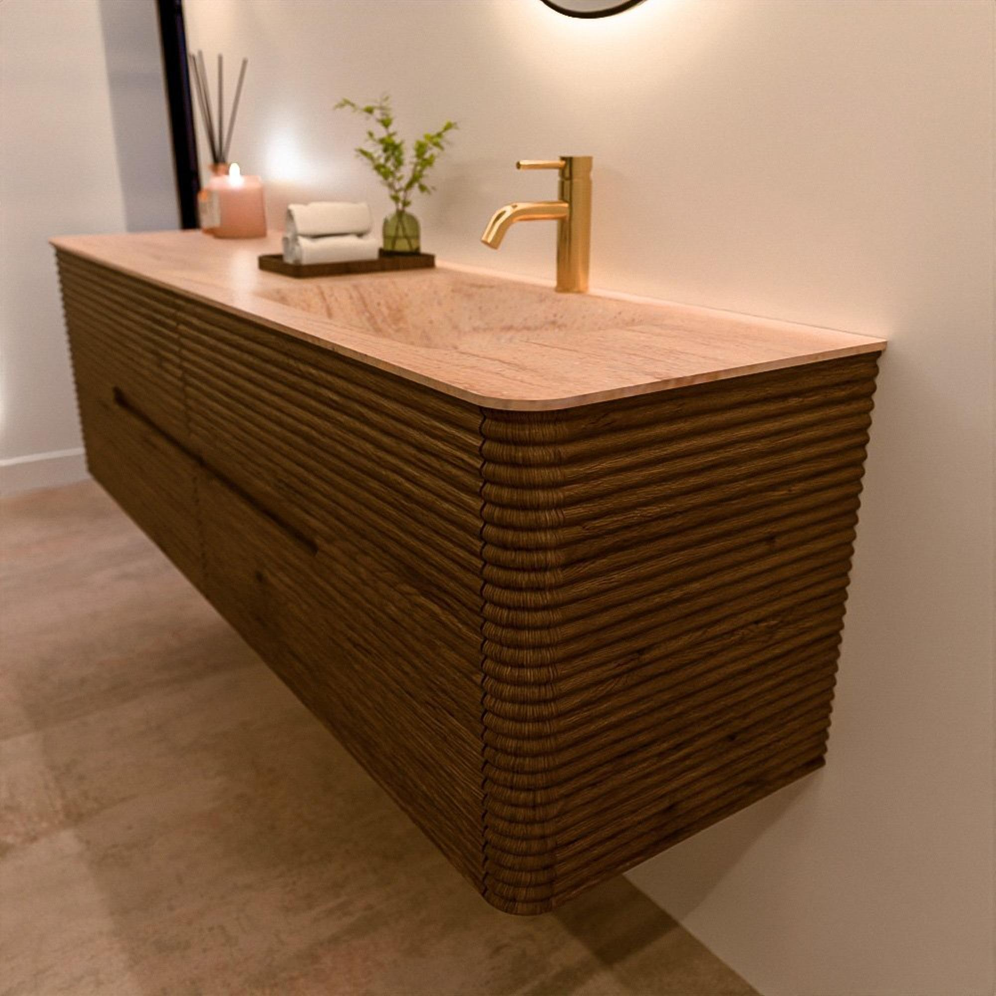 Le meuble de salle de bain CIRO-DLUX a été développé pour ceux qui choisissent un design moderne, des matériaux naturels et une fonctionnalité de haute qualité. Avec des dimensions allant de 70 cm à 190 cm, la gamme CIRO-DLUX s’intègre facilement aussi bien dans les salles de bain compactes que dans les grands espaces de design. Chaque meuble est une combinaison équilibrée d’esthétique, de savoir-faire et de qualité durable.