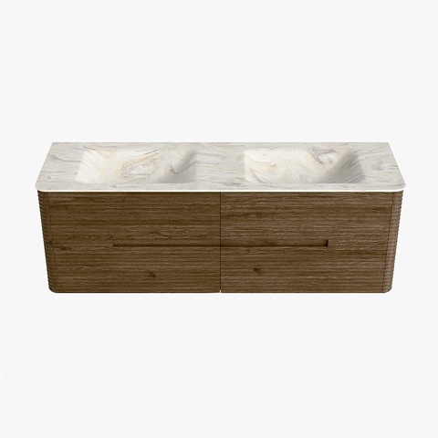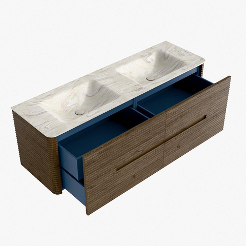 Mondiaz CIRO-DLUX Ensemble de meubles de salle de bains - 150x45x50cm - Vasque en solid surface Ostra - 2 bassins double - sans trous de robinet - 4 tiroirs - Dusk
