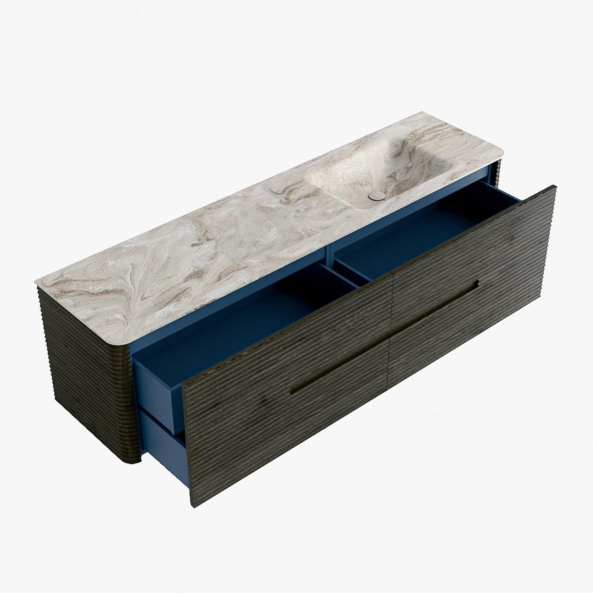 Mondiaz CIRO-DLUX Meuble de salle de bains - 180x45x50cm - Lavabo en solid surface Frappe - 1 vasque à droite - 1 trou de robinet - 4 tiroirs - Shadow
