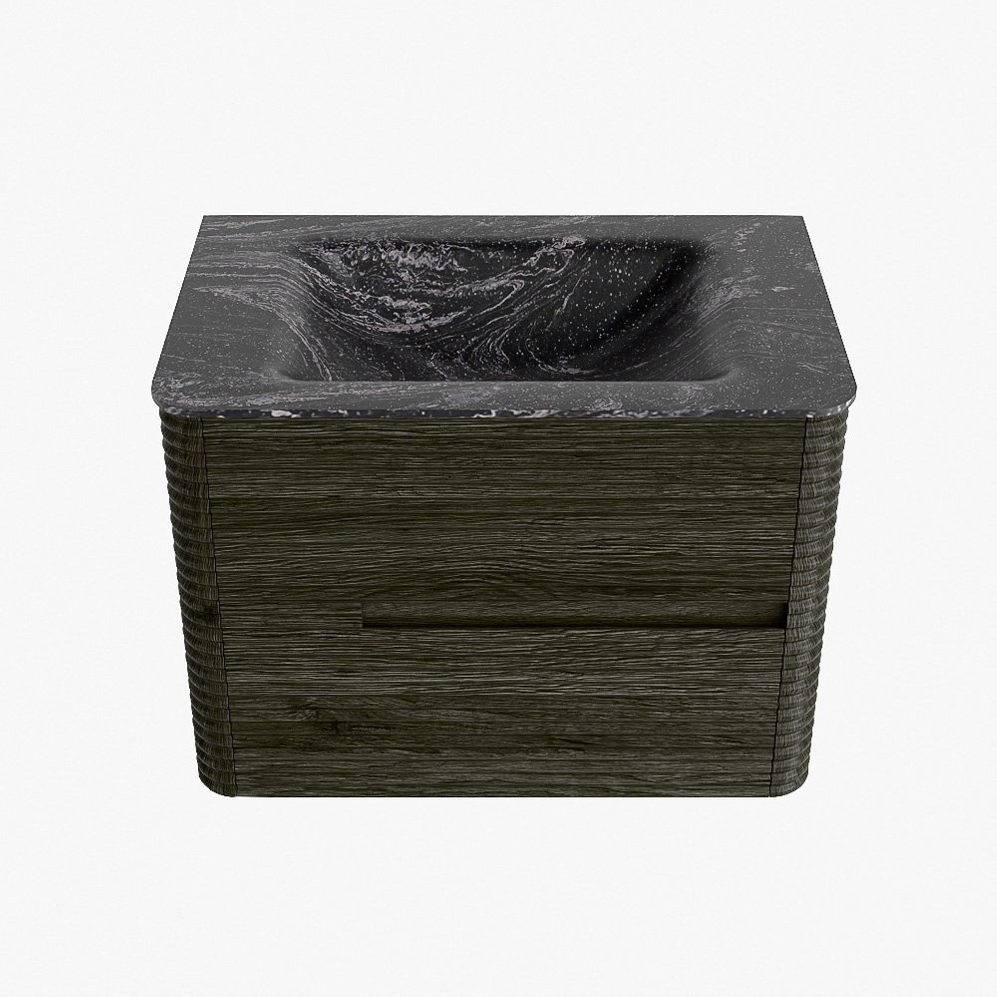 Mondiaz CIRO-DLUX Meuble de salle de bains - 70x45x50cm - lavabo solid surface Lava - 1 vasque centrale - sans trous de robinet - 2 tiroirs - Shadow